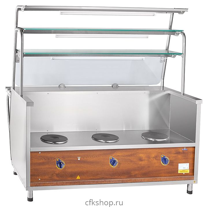 - Мармит первых блюд - 3 конфорки с регулировкой мощности ступенчатым переключателем