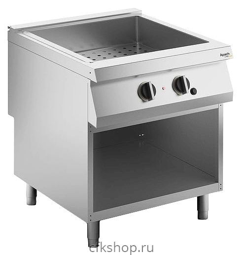 Мармит Apach Chef Line SLBME89OS серии 900 используется в составе технологической линии или самостоятельно для поддержания в горячем состоянии первых и вторых блюд на предприятиях общественного питания и торговли. Модель оснащена нагревательными элементами, расположенными под ванной и открытой подставкой с регулируемыми ножками. Корпус и ванна выполнены из нержавеющей стали AISI 304, нагревательные элементы - из армированной нержавеющей стали.