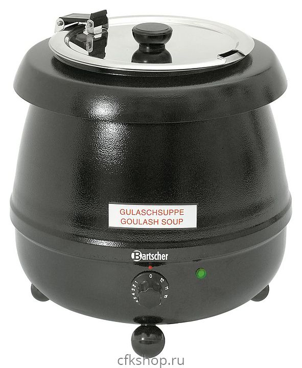 Мармит Bartscher Party 100054 предназначен для поддержания в горячем состоянии первых блюд в течение длительного времени на предприятиях общественного питания и торговли. Модель оснащена термоизолированными ручками и отверстием для ложки. Корпус выполнен из лакированной нержавеющей стали, съемный котел и откидная крышка - из нержавеющей стали.