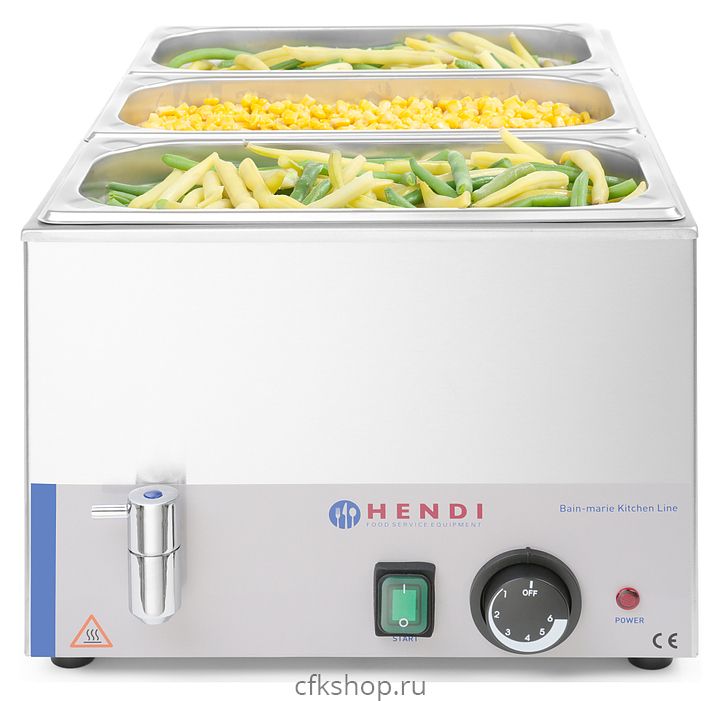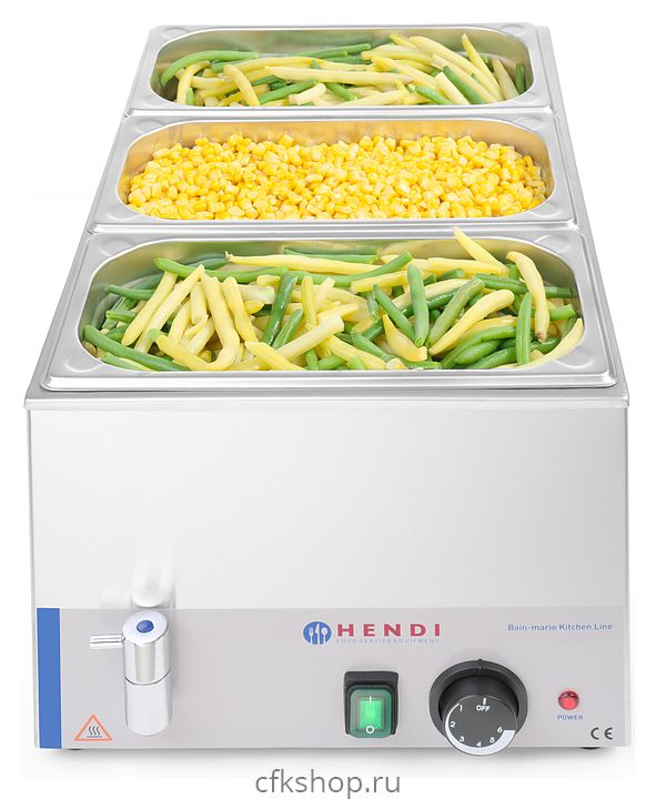 Мармит HENDI Kitchen Line 238905 предназначен для демонстрации и поддержания постоянной температуры готовых блюд на предприятиях общественного питания. Оборудование позволяет избежать остывания и последующего подогрева блюд, негативно сказывающихся на вкусовых качествах. Модель оснащена выключателем, плавным регулятором температуры, термостатом и индикатором. Корпус выполнен из нержавеющей стали с профилированными гладкими внутренними краями для легкой очистки.