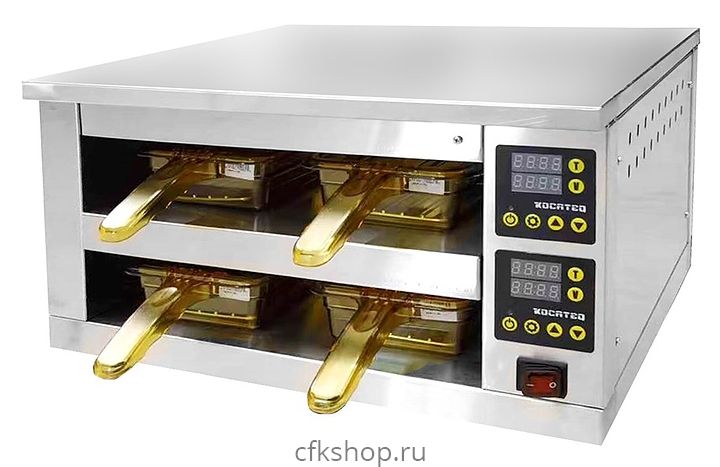 Мармит Kocateq DH 2-2M2 предназначен для поддержания готовых блюд в горячем виде на предприятиях общественного питания и торговли, в школах и детских садах. Модель оснащена 2 независимыми электронными панелями, таймером и пленочными нагревательными элементами. Корпус выполнен из нержавеющей стали AISI 201.
