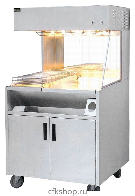 Мармит для чипсов Kocateq DH60EFF используется на предприятиях общественного питания и торговли для кратковременного хранения и упаковки картофеля-фри, крокетов, чипсов и прочих продуктов, обжаренных во фритюре. Источником инфракрасного излучения являются 4 ИК-лампы, которые создают нагрев и распределяют тепловой поток по всей площади при помощи рефлектора. Все части, контактирующие с продуктами, выполнены из нержавеющей стали AISI 304.