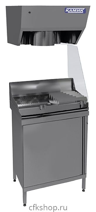 Мармит КАМИК МФ-320888 используется на предприятиях общественного питания и торговли для кратковременного хранения, демонстрации, поддержания в теплом состоянии и последующей фасовки готового картофеля фри. Модель оснащена распашной дверью и осветительным коробом. Столешница выполнена из нержавеющей стали AISI 430 толщиной 1,5 мм, корпус и остальные части изделия - из нержавеющей стали AISI 430 толщиной 1 мм.