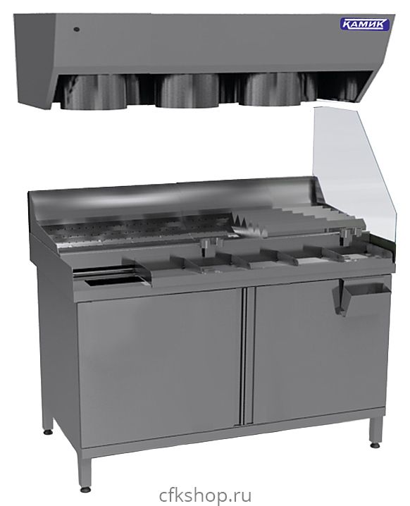 Мармит КАМИК МФ-40181 используется на предприятиях общественного питания и торговли для кратковременного хранения, демонстрации, поддержания в теплом состоянии и последующей фасовки готового картофеля фри. Модель оснащена распашными дверями, осветительным коробом, колесами, пакетодержателем и навесным карманом. Столешница выполнена из нержавеющей стали AISI 430 толщиной 1,5 мм, корпус и остальные части изделия - из нержавеющей стали AISI 430 толщиной 1 мм.