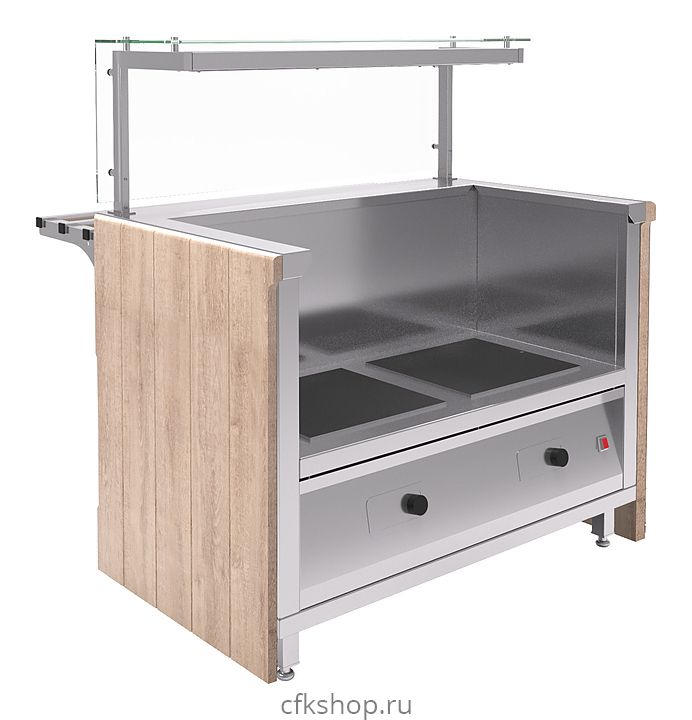 Внимание! На фото аналогичная модель другого размера со столешницей из нержавеющей стали, 2 конфорками и направляющей для подносов.