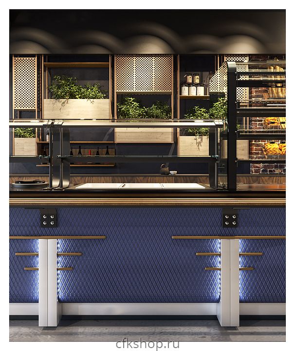 Внимание! На фото аналогичная модель другого размера с 2 конфорками, каменной столешницей и направляющей для подносов.