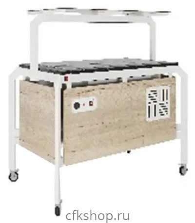 Мармит Кобор AT120 предназначен для демонстрации, кратковременного хранения и поддержания в горячем состоянии гарниров в гастроемкостях в составе линий раздачи в кафе, ресторанах и фудкортах, на предприятиях общественного питания и торговли. Модель оснащена механическим терморегулятором, ножками на поворотных колесах для мобильности, 2 колеса оснащены тормозом. Каркас выполнен из профиля сечением 60х30, покрытого порошковой краской, внешний корпус - из ЛДСП, столешница - из искусственного камня.