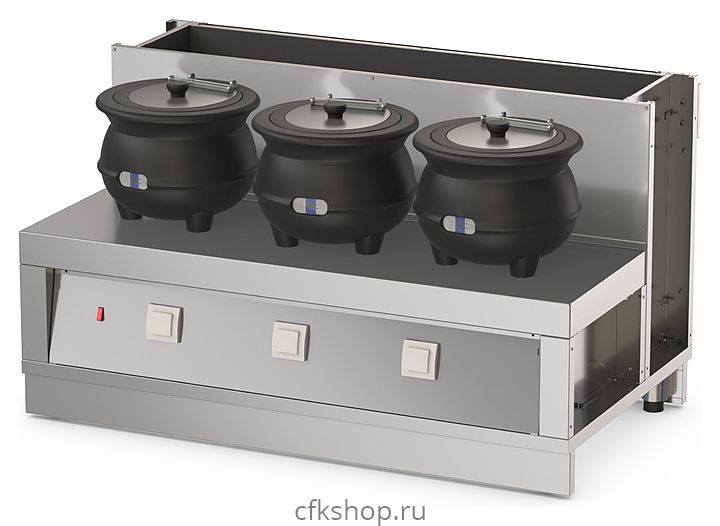 - Подходит для размещения 3 электросупниц объемом до 16 литров