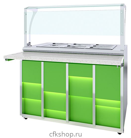 Паровой мармит Luxstahl МВП (С)-1200 Premium Neon используется в составе линии раздачи Neon на предприятиях общественного питания и торговли для поддержания в горячем состоянии гастроемкостей со вторыми блюдами, гарнирами и соусами. Модель оснащена 2 ПЭНами, осуществляющими нагрев воды. Каркас выполнен из нержавеющей стали AISI 430 толщиной 1 мм, навесной элемент - из нержавеющей стали AISI 430 толщиной 3 мм, верхняя полка и санитарная защита - из закаленного стекла толщиной 6 мм, фасад - из ЛДСП, стойки фасада - из ДСП и HPL-пластика Abet Laminati, направляющая для подносов - из профильной трубы 25х25 мм.