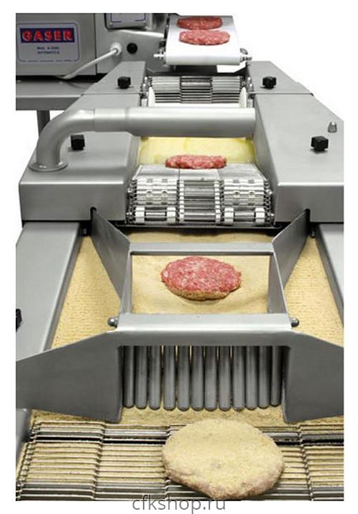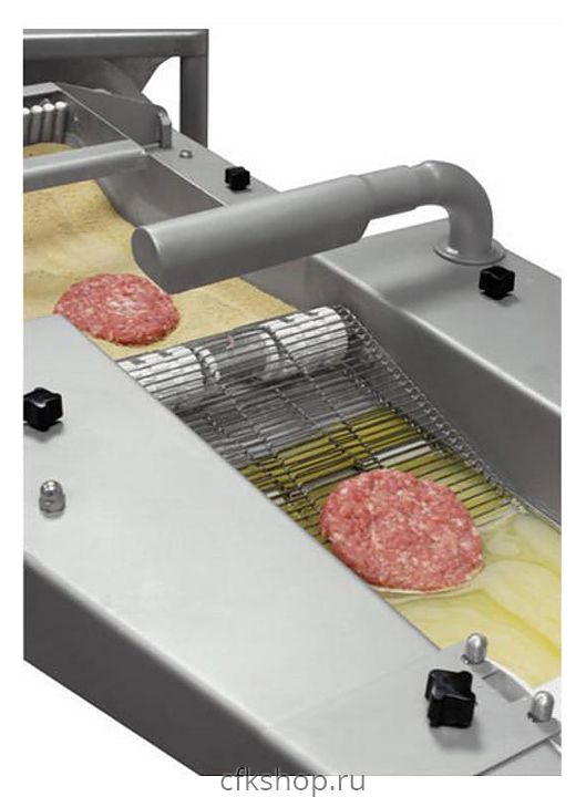 - Подача продукта на ленту или на выходной наклонный транспортер для удаления лишней панировки