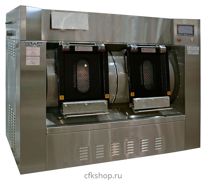 Стирально-отжимная машина "барьерного" типа Вязьма ВБ-60П используется в прачечных медицинских учреждениях, или в учреждениях атомной, химической, электронной промышленности для стирки, полоскания, отжима и растряски белья, ткани и одежды. Модель оснащена возможностью загрузки и выгрузки белья из разных зон, т.е. в помещениях, разделенных стеной. Благодаря низкому уровню остаточной влажности, исключается необходимость использования центрифуги. Облицовки корпуса изготовлены из нержавеющей стали.