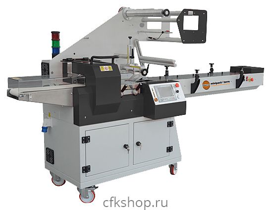 Упаковочная машина Minipack-Torre MINIFLOW 400 используется на промышленных и торговых предприятиях для упаковки компакт-дисков, канцелярских и прочих товаров для офиса, продуктов питания полипропиленой (ПП) пленкой. Модель оснащена сенсорной панелью управления.