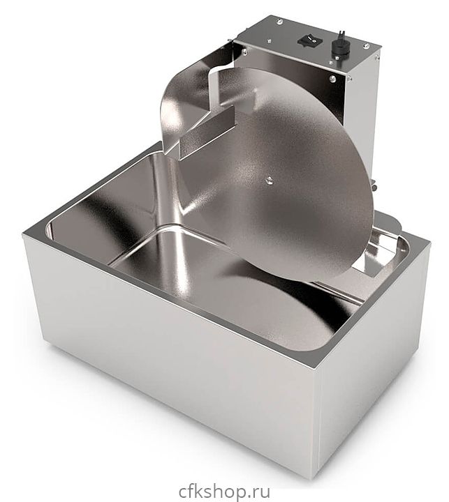 Колесный миксер используется совместно с температором Kadzama с загрузкой 20 кг на предприятиях общественного питания и торговли. Корпус и колесо выполнены из нержавеющей стали AISI 304.