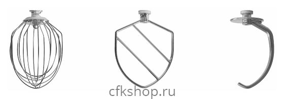 В комплект поставки входят 3 насадки: венчик, крюк и лопатка.