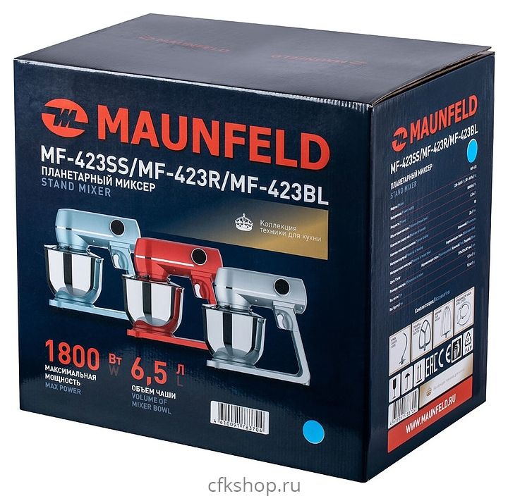 Планетарный миксер Maunfeld MF-423R используется на предприятиях пищевой промышленности, общественного питания и торговли, а также в домашних условиях для замеса теста жидкой консистенции, в том числе белкового, заварного, дрожжевого, бисквитного, а также приготовления кремов и соусов. Модель оснащена сенсорной панелью управления круглой формы с цифровым дисплеем с яркой голубой светодиодной подсветкой. Корпус выполнен из алюминия с покрытием красного цвета, дежа и рабочие элементы насадок – из высококачественной нержавеющей стали с глянцевой поверхностью, упаковка – картонная коробка.