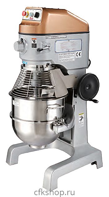 Месильный орган вращается вокруг своей оси и оси дежи, тем самым обеспечивая получение однородной массы. Миксер оснащен механической коробкой передач.