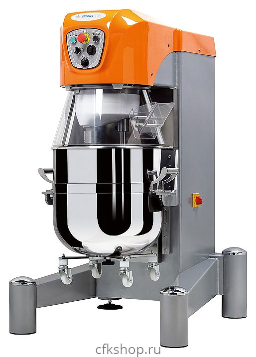 Напольный планетарный миксер Starmix PL80N3AF+CARPL80-120 предназначен для взбивания кондитерских масс: кремов, суфле, муссов, а также бисквитного, дрожжевого, песочного, блинного, заварного теста на предприятиях общественного питания и торговли, в пекарнях и кондитерских. Модель оснащена электромеханической панелью управления. Корпус выполнен из окрашенного металла, защитный кожух - из пластика.