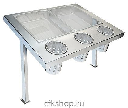 В комплект поставки входят 3 стакана под приборы и 2 гастроемкости GN 1/2.