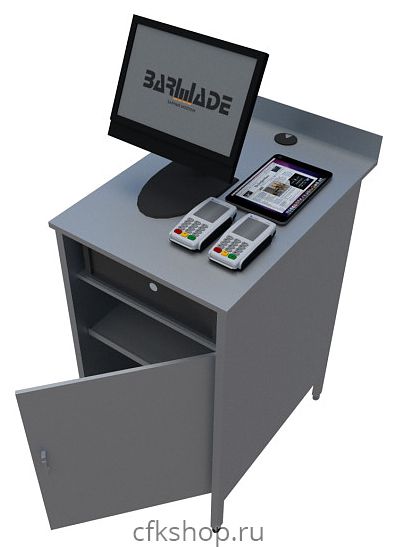 Кассовый модуль BARMADE 500х700х900 мм предназначен для размещения кассового оборудования и эффективной организации рабочего пространства кассира на предприятиях общественного питания и торговли. Модель оснащена закрытым стендом на 4 опорах. Изделие выполнено из нержавеющей стали марки AISI430, опоры – из профиля трубы квадратного сечения.