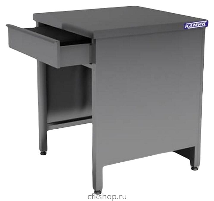 Кассовый модуль КАМИК КМ 800х700х850 мм используется в составе линий раздач в заведениях с элементами самообслуживания и предназначен для конечного расчета с покупателями. Модель оснащена выдвижным ящиком без отделки. Прилавок изготовлен из нержавеющей стали AISI 430.