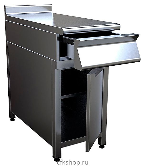 Закрытый нейтральный модуль Кобор N7-6EB используется в составе тепловой линии 700 в качестве дополнительного места для раскатки теста, обработки ингредиентов для приготовления блюд, установки оборудования и приборов. Модуль оснащен выдвижным ящиком, сплошной полкой, распашной дверцей и регулируемыми по высоте ножками. Корпус выполнен из нержавеющей стали AISI 430, каркас - из профильной трубы 40х40 мм.