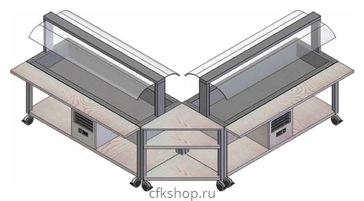 Модуль Metalcarrelli 6900.A01R предназначен для использования в составе линии раздачи. Конструкция позволяет осуществить изгиб всей линии под углом 90°.