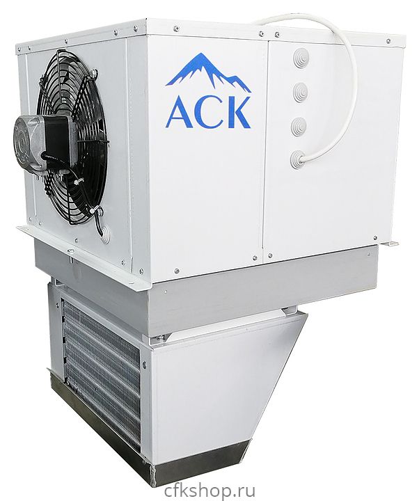 Среднетемпературный потолочный моноблок АСК-Холод МСп-12 предназначен для поддержания необходимого температурного режима в холодильных камерах на предприятиях пищевой промышленности, общественного питания и торговли. Модель выполнена в виде единого блока, воздухоохладитель (испаритель) которого устанавливается во внутренний объем холодильной камеры, а компрессорно-конденсаторный блок - снаружи. Корпус изготовлен из оцинкованной стали белого цвета толщиной от 0,9 до 1,2 мм с полимерным покрытием, трубы конденсатора и испарителя - из меди, ребра - из алюминиевого сплава.