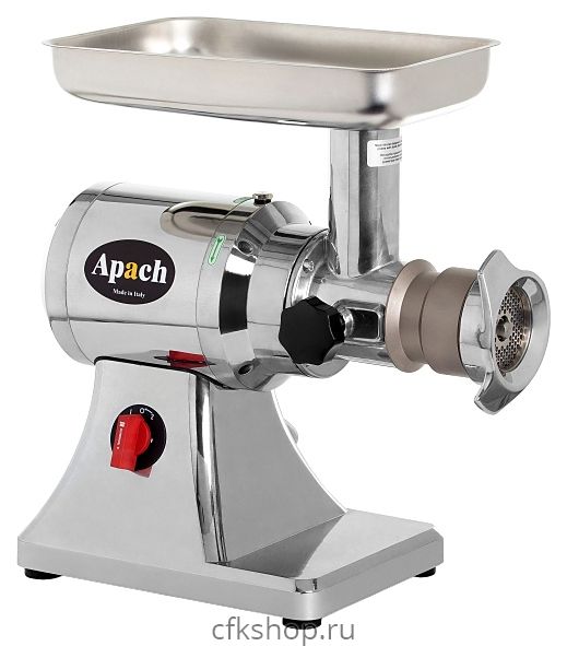 Мясорубка Apach ATS12U предназначена для измельчения мяса и рыбы в фарш, измельчения котлетной массы и набивки колбас на предприятиях общественного питания и торговли. Модель оснащена усиленным редуктором и вентилируемым асинхронным двигателем с защитой от перегрузок. Ножи, лоток и горловина выполнены из нержавеющей стали, мясорубочная часть - из пищевого чугуна, толкатель - из ABS пластика.