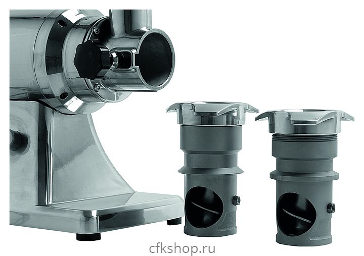 В комплект поставки входят пластиковый толкатель, лоток для подачи мяса и приемный лоток.