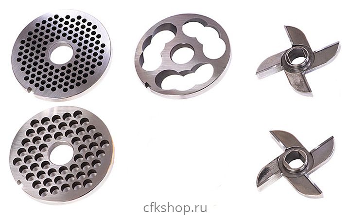 В комплект поставки входят подрезной нож, 2 крестовых ножа и 2 решетки.