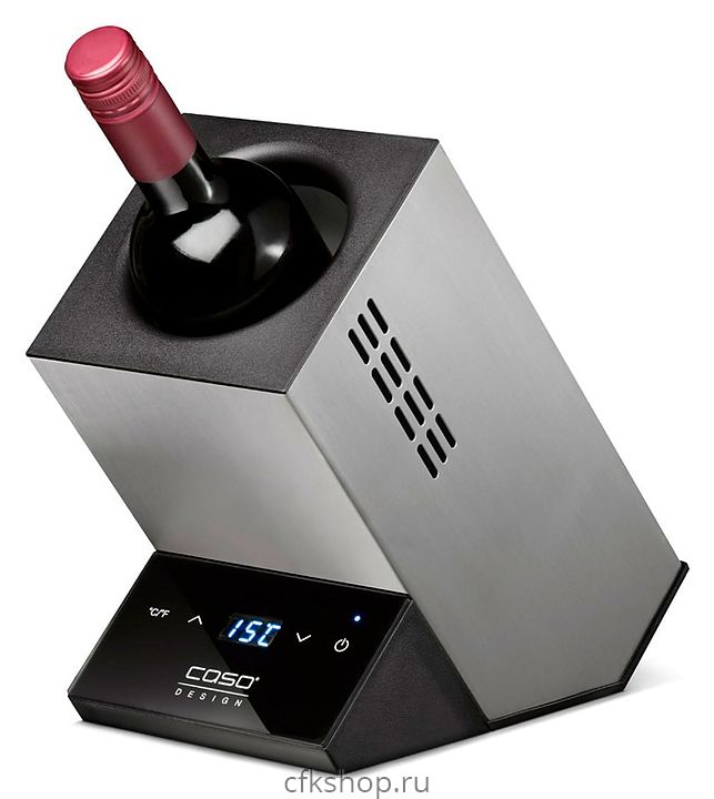 Охладитель бутылок CASO WineCase One Inox предназначен для охлаждения, хранения и демонстрации бутилированного вина в частных домах, квартирах, отелях и офисах. Модель оснащена сенсорной панелью управления c дисплеем, на котором отображается заданная температура. Корпус выполнен из нержавеющей стали.
