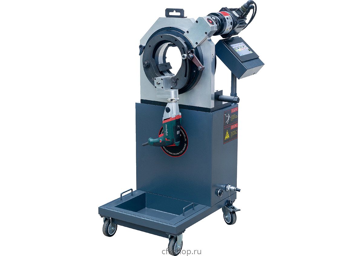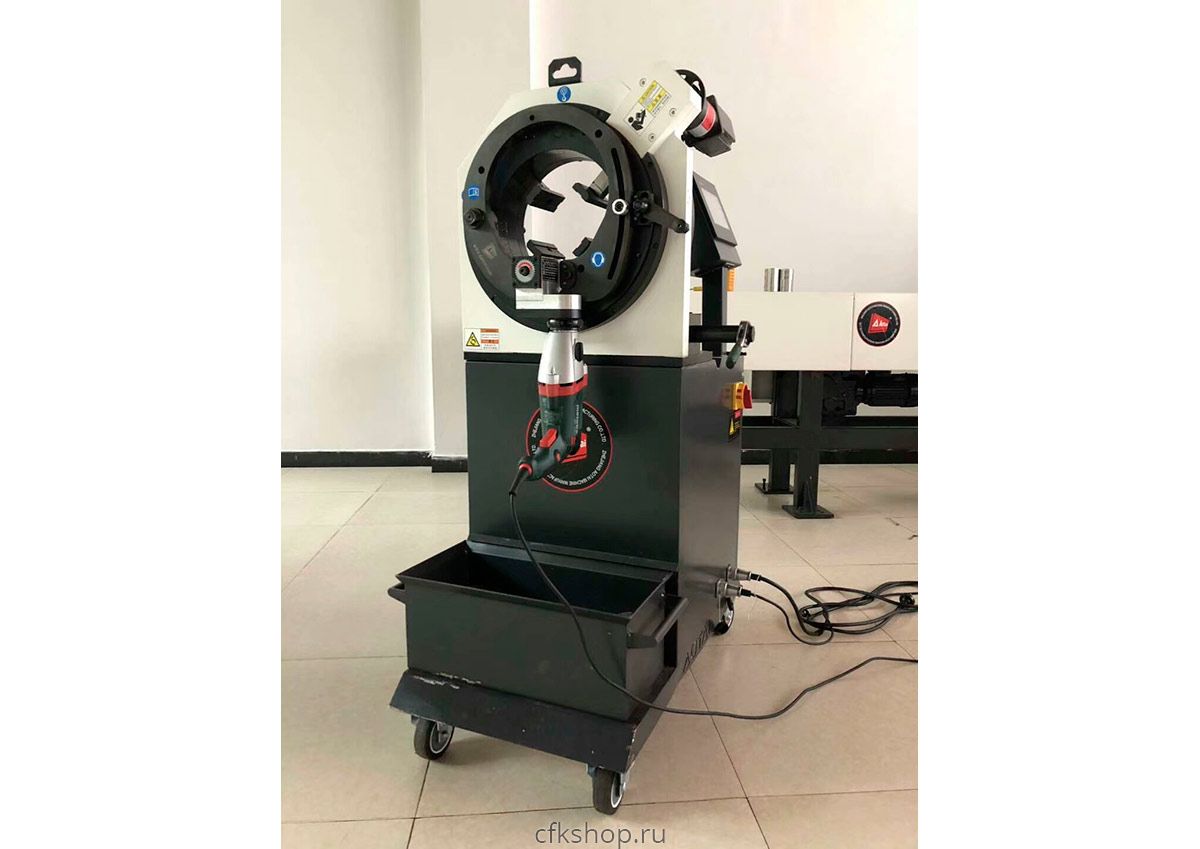 Передвижной труборез орбитальной резки, используется для механической резки и снятия фаски на тонкостенных трубах. Машина предназначена для обработки труб из черных и цветных металлов, пластика и нержавеющей стали. Специальные самоцентрирующиеся губки защищают стенки труб от деформации. Рабочий инструмент — пильный диск. Его скорость вращения регулируется в диапазоне 80-120 об/мин, в зависимости от режима резки, материала и размеров трубы. Результатом резки является абсолютная перпендикулярность полученного торца к оси трубы а также отсутствие заусенцев в особенности на внутренней поверхности трубы за счет резки "изнутри наружу".