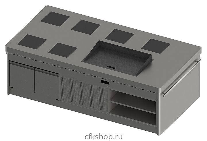 Тепловой остров RestoArt RA-IH20-08 предназначен приготовления и кратковременного хранения блюд с последующей их раздачей в составе тепловых линий на предприятиях общественного питания и торговли. Модель оснащена нишами для установки различного оборудования и столешницей со скругленными углами.