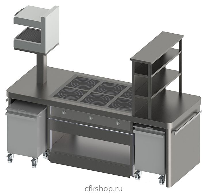 Тепловой остров RestoArt RA-IH20-10 предназначен приготовления и кратковременного хранения блюд с последующей их раздачей в составе тепловых линий на предприятиях общественного питания и торговли. Модель оснащена нишами для установки различного оборудования и столешницей со скругленными углами.