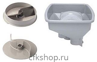 В комплект поставки входит полукруглая воронка 2,2 л, цилиндрическая воронка Ø 58 мм и Ø 39 мм, толкатель Exactitub, аксессуар для безопасной и бережной очистки решеток D-Clean Kit и протирка для картофельного пюре 28189 2 мм или 28207 3 мм. Модель протирки уточняйте у наших менеджеров.
