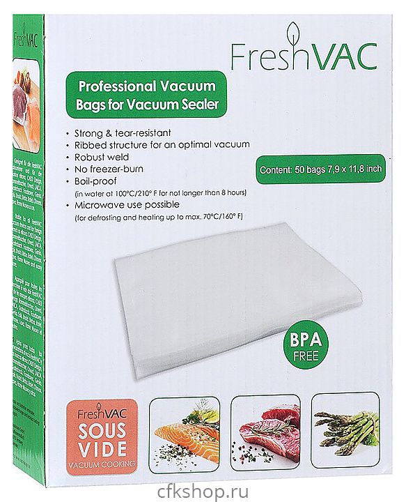 Вакуумные пакеты Ellrona FreshVACpro 20*30 используются совместно с бескамерными упаковщиками для упаковки продуктов в частных домах и квартирах для последующего их хранения или приготовления по технологии Sous Vide.