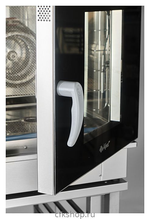 - Двухходовый механизм открывания дверцы духовки обеспечивает безопасность персонала от воздействия горячего пара