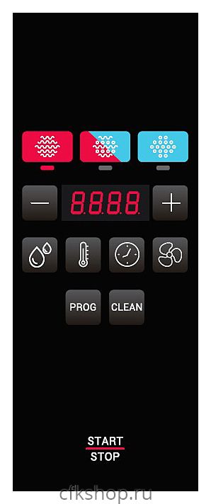 - Конвекция + пароувлажнение (температура от 30 до 260 °C, влажность до 100% с шагом 20%)