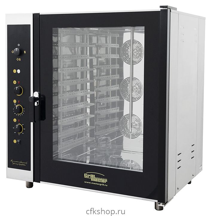 Пароконвектомат Grill Master ПКЭ/10Г предназначен для приготовления широкого спектра блюд на предприятиях общественного питания и торговли. Модель оснащена 3 нагревательными элементами, 3 вентиляторами с реверсом, подсветкой камеры, дверью с двойным термостойким стеклом и душем. Изделие выполнено из нержавеющей стали.