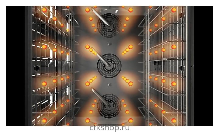 - Технология Air Flow - благодаря нескольким реверсивным вентиляторам система переменного воздуха обеспечивает усиление его потока в варочную камеру печи и гарантирует превосходный равномерный результат