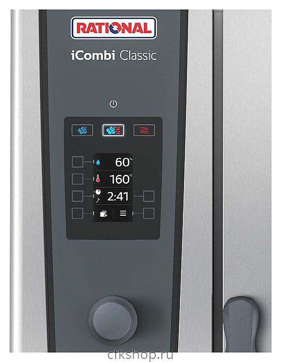 Пароконвектомат Rational iCombi Classic 6-1/1 предназначен для приготовления блюд путём жарки, тушения или варения на предприятиях общественного питания и торговли. Такое оборудование может заменить плиту, жарочный и духовой шкаф, конвекционную печь, опрокидывающуюся сковороду, пищеварочный котел и др. Модель оснащена цветным TFT-дисплеем с мягкими кнопками и поворотным регулятором с функцией Push.