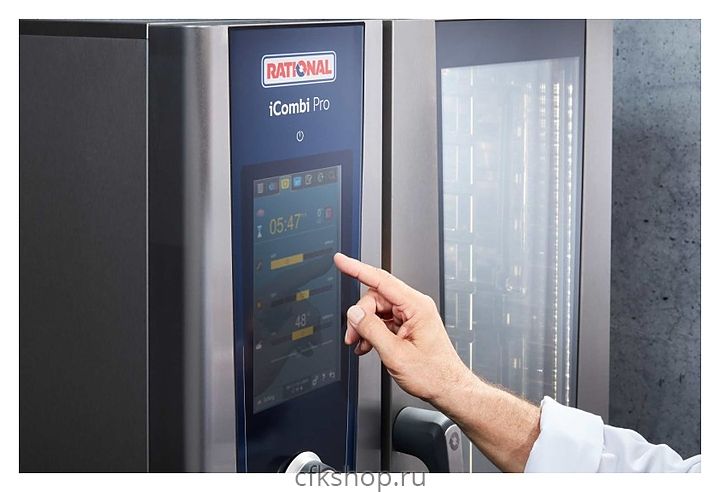Пароконвектомат Rational iCombi Pro 10-1/1 предназначен для приготовления блюд путём жарки, тушения или варения на предприятиях общественного питания и торговли. Такое оборудование может заменить плиту, жарочный и духовой шкаф, конвекционную печь, опрокидывающуюся сковороду, пищеварочный котел и др. Модель оснащена цветным 8,5 дюймовым TFT-монитором, сенсорным экраном с самообъясняющими символами.