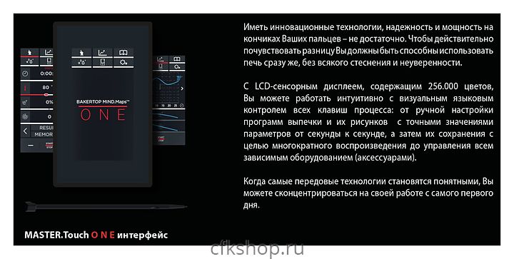 - Визуализация остаточного времени выпечки (при работе без термощупа в сердцевине продукта)