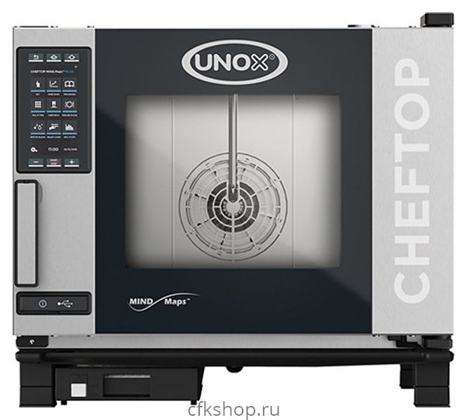 Пароконвектомат UNOX XEVC-0511-EPLM серии CHEFTOP MIND.Maps™ PLUS предназначен для приготовления различных блюд, выпечки хлебобулочных и кондитерских изделий на предприятиях общественного питания и торговли, в пекарнях и кондитерских. Модель оснащена встроенной в дверь светодиодной LED-подсветкой и C-образными с зубчатыми нишами направляющими. Внутреннее открывающееся стекло облегчает чистку и обеспечивает максимальную гигиену. Камера с закругленными углами выполнена из нержавеющей стали AISI 304, направляющие - из профилированной стали, дверной замок - из высокопрочного самосмазывающегося технополимера, внутренний штифт дверной ручки - из углеродного волокна.