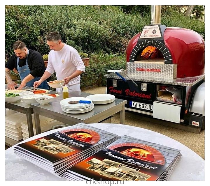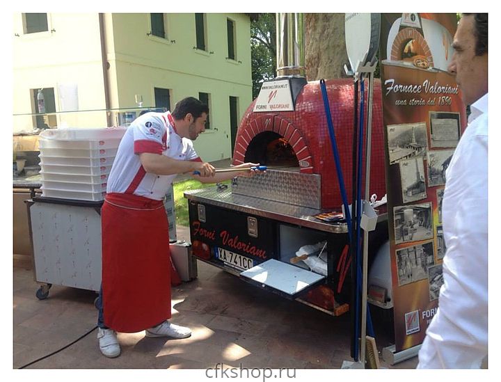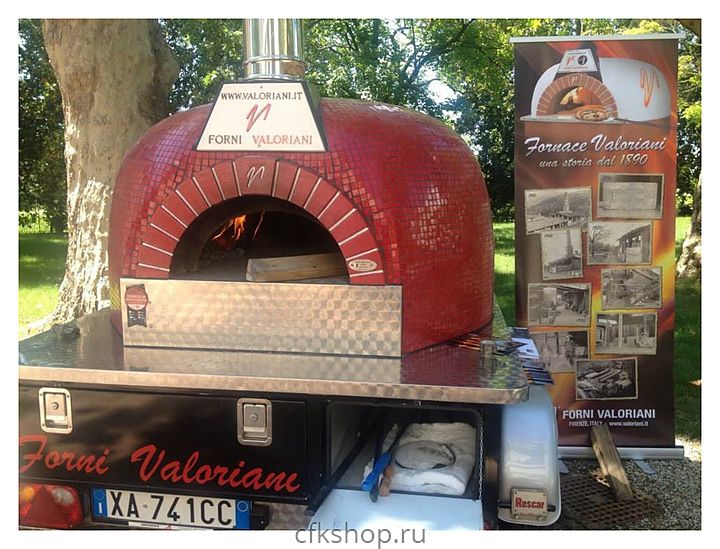 Мобильная дровяная печь Valoriani Trailer 120 используется в местах уличной торговли и предприятий общественного питания, во время проведения фестивалей, праздников и других массовых мероприятий на открытом воздухе для выпечки пиццы, хлеба и пирогов, приготовления шашлыка и гриль-блюд, обжарки, тушения и запекания по рецептуре, основанной на томлении и длительной выдержке при медленно падающей температуре. Печь оснащена декоративной дверной аркой, в прицепе имеются вместительные отсеки для хранения дров, дымохода, прочего необходимого оборудования и кулинарных ингредиентов. Элементы пода выполнены из огнеупорной натуральной глины с высоким содержанием глинозема, платформа прицепа, дымоход и колпак – из нержавеющей стали.