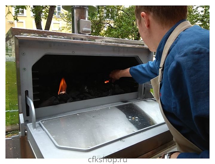 В комплект поставки входят шкаф-подставка, искрогаситель, жаропрочная гриль-решетка, верхняя полка-решетка для готовых продуктов и ведро для золы.