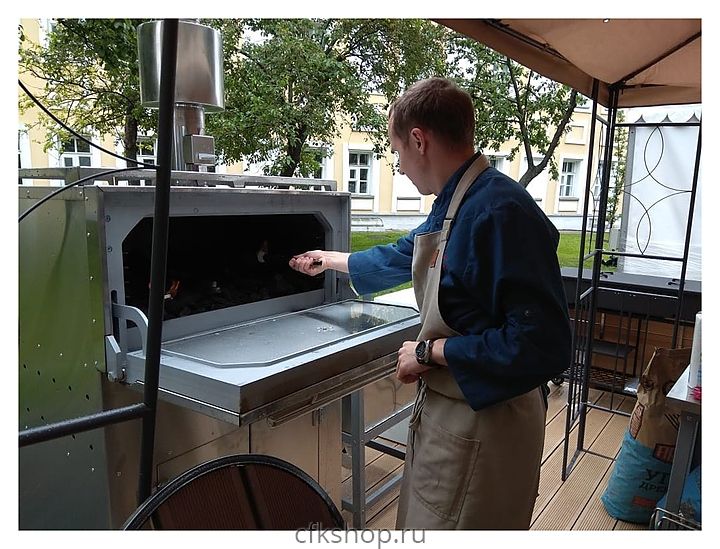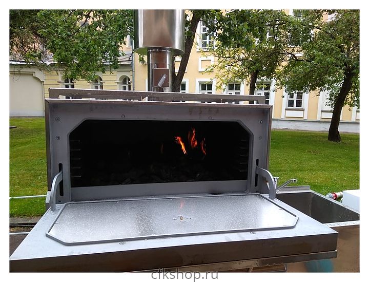 В комплект поставки входят шкаф-подставка, искрогаситель, ящик для золы, 2 жаропрочные гриль-решетки и верхняя полка-решетка для готовых продуктов.