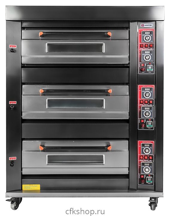 Хлебопекарная печь Miratek BK-36 используется на предприятиях общественного питания, торговли, в пекарнях и кондитерских для выпечки широкого ассортимента хлебобулочных и кондитерских изделий. Модель оснащена электромеханической панелью управления и автоматическим поддержанием температурного режима в камере.