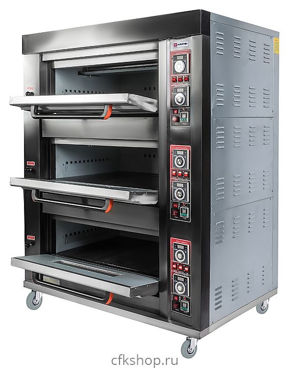 - Независимая настройка параметров для каждого яруса предоставляет возможность одновременно выпекать продукцию в различных температурных режимах