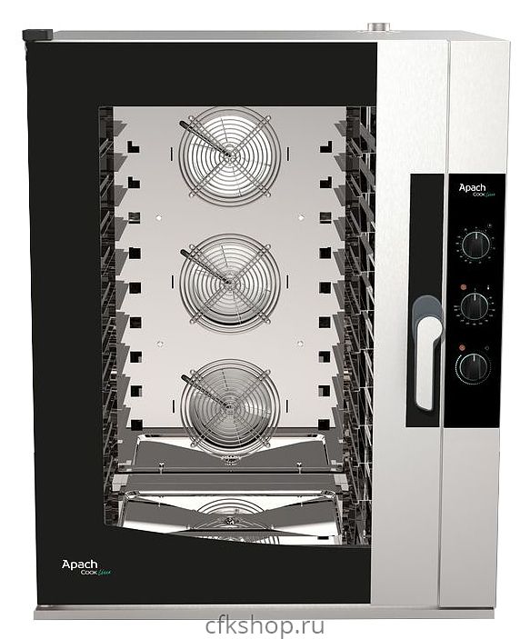 Конвекционная печь Apach AB10QM предназначена для выпекания или разогрева кондитерских и хлебобулочных изделий, готовых блюд, замороженных или предварительно выдержанных в расстоечном шкафу заготовок из теста на предприятиях общественного питания и торговли. Модель оснащена электромеханической панелью управления и подсветкой камеры галогеновой лампой. Камера легко чистится благодаря закругленным углам. Корпус и камера печи изготовлены из нержавеющей стали, дверца - из двойного закаленного стекла.